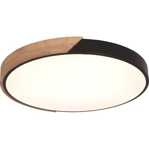 PLAFON WOOD Ø40CM MADEIRA, PRETO E ACRÍLICO BRANCO BIVOLT 54W 3000K METAL, ACRÍLICO E MADEIRA