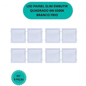 PLAFON LED QUADRADO SLIM EMBUTIR 6W 6500K KIT 8