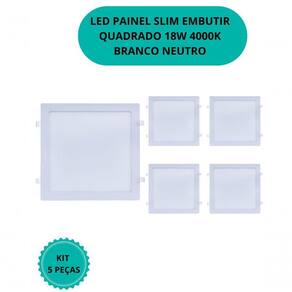 PLAFON LED QUADRADO SLIM EMBUTIR 18W 4000K KIT 5