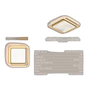 O Plafon Hoop é uma luminária de teto quadrada que apresenta um design moderno e inovador, ideal para quem busca uma iluminação com estilo. Com potência de 72W, ele é capaz de iluminar um ambiente com uma luz intensa e uniforme, proporcionando maior conforto visual e uma atmosfera agradável. Uma das principais características deste plafon é a sua capacidade de apresentar diferentes cores, graças à sua iluminação multicolorida. Além disso, é incluso um controle remoto, que permite selecionar diferentes tonalidades, além de ajustar o nível de brilho para criar uma atmosfera ainda mais personalizada. Temperatura de Cor: 3000K até 6500K Cor: Dourado IRC: 80 Potência: 72W Frequência: 50/60 Hz Fator de Potência: 0.6 Tensão: 100-240V Grau de proteção: IP20 Peso: 4kg Composição: Ferro e Acrílico Marca: Não Informado