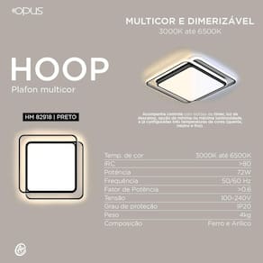O Plafon Hoop é uma luminária de teto quadrada que apresenta um design moderno e inovador, ideal para quem busca uma iluminação com estilo. Com potência de 72W, ele é capaz de iluminar um ambiente com uma luz intensa e uniforme, proporcionando maior conforto visual e uma atmosfera agradável. Uma das principais características deste plafon é a sua capacidade de apresentar diferentes cores, graças à sua iluminação multicolorida. Além disso, é incluso um controle remoto, que permite selecionar diferentes tonalidades, além de ajustar o nível de brilho para criar uma atmosfera ainda mais personalizada. Temperatura de Cor: 3000K até 6500K Cor: Preto IRC: 80 Potência: 72W Frequência: 50/60 Hz Fator de Potência: 0.6 Tensão: 100-240V Grau de proteção: IP20 Peso: 4kg Composição: Ferro e Acrílico Marca: Não Informado