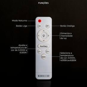 O que vem na caixa: 1 Plafon 1 Controle Remoto para dimerização e troca de temperatura de cor