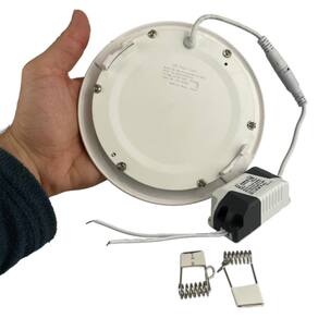 Marca: Lorben Cor: Branco Material: ABS Voltagem: 127/220V Tipo de lâmpada: LED Potência: 9W Formato: Redondo Medida da Furação no teto: 10cm Profundidade para embutir: 20mm Tipo de instalação: Embutir Cor da luz: BRANCO QUENTE Vida útil do led: 50.000 horas Temperatura da luz: 6500k Fluxo luminoso: Aproximadamente 1000 a 1500 lúmens Eficiência luminosa: Aproximadamente 85 lúmens Ângulo de abertura: 120° Ta: 45°C - Tc: 85°C