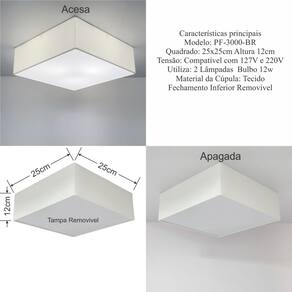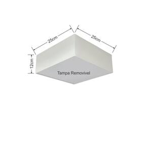 Plafon para banheiro quadrado SB-3000 com cúpula branca, perfeito para iluminar seu ambiente com eficiência e estilo. Com design moderno e discreto, este plafon proporciona uma iluminação uniforme, ideal para espaços que exigem conforto visual e praticidade. Sua estrutura compacta de 25x25 cm e altura de 12 cm facilita a instalação, enquanto a tampa removível permite fácil acesso para manutenção e troca da lâmpada. Fabricado com materiais resistentes à umidade, é a escolha certa para ambientes úmidos como banheiros, garantindo durabilidade e segurança. Transforme seu banheiro com uma iluminação que valoriza o espaço, aliando funcionalidade e beleza em um só produto.