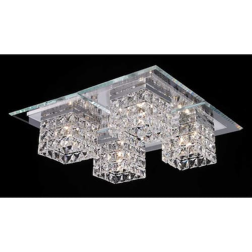 Plafon Quadrado Cromado com Cristais Transparente