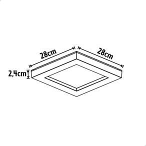 - As dimensões deste plafon são: 28cm de largura, 28cm de comprimento e 2,4cm de altura/espessura.