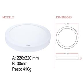 Painel Plafon Sobrepor Redondo 18w 22 x 22 cm