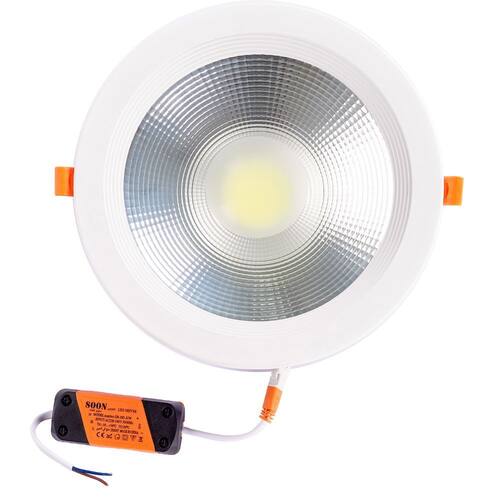 - Tamanho 22 cm diametro e 5 cm de altura - Cor: BQ 6500k - Potência: 30W - Tensão: 220V - Ângulo de abertura: 180º - Vida Útil: 50.000h