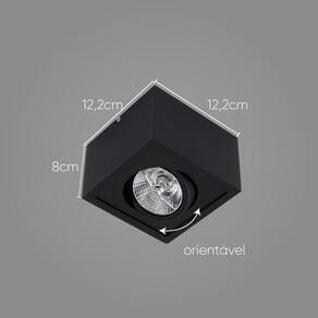 ESPECIFICAÇÕES TÉCNICAS: Marca: Orluce Modelo: OR1450 Cores disponíveis: Preto Material: Alumínio Tipo de Soquete: GU10 Número de soquetes: 1 un Tipo de lâmpada que utiliza: AR70 Voltagem: Bivolt Indicado para uso: interno Largura: 12,2cm Altura: 8cm Profundidade: 12,2cm Peso líquido: 0,307g Peso bruto: 0,371g Medidas da Caixa: 13 x 15 x 13,5cm Garantia: 1 ano