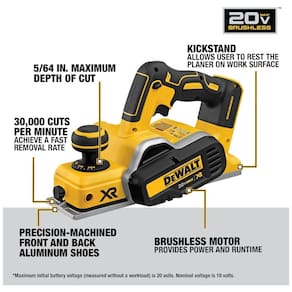 O motor sem escova do planejador manual elétrico fornece energia e tempo de execução A plaina manual com 30.000 cortes por minuto atinge uma taxa de remoção rápida Profundidade máxima de corte de 5, 64 polegadas . Botão de ajuste de profundidade calibrado para 1, 256 polegada 0,. aproximadamente Sapatas de alumínio frontal e traseira usinadas com precisão garantem paralelismo de corte O suporte permite que o usuário descanse a plaina na superfície de trabalho sem goivar o material Ranhura usinada com precisão na sapata frontal permite chanfrar a borda Marca: Não Informado