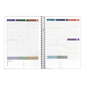 O planner espiral fluor mix soft traz cores pastéis que são tendências o ano todo, modernidade e leveza. Contém capas plásticas e transparentes que carregam um design clean e sutil. Possui miolo permanente com visão semanal e é ideal para a organização pessoal, escolar ou até mesmo profissional do dia a dia. Detalhes: acessórios: bolsa de papel, cartela de adesivos e elástico capa em p.P. Espiral branco formato: 177 x 240mm hot stamping miolo em 2 idiomas: português e espanhol miolo permanente com visão semanal número de folhas: 80 atenção: imagem meramente ilustrativa. Pode ocorrer mudanças no tom da cor para o produto real ou mudanças na embalagem sem aviso prévio por parte do fornecedor/fabricante.