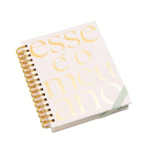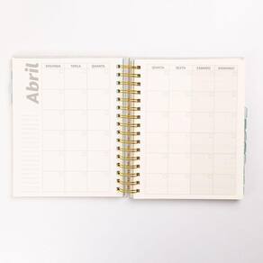 Contando com uma capa dura, letras em foil dourado e um elástico de fechamento na base (na cor verde-menta), em seu interior, ele traz 115 folhas e 12 divisórias temáticas entre os meses, cada uma delas apresentando uma linda textura no estilo granilite.