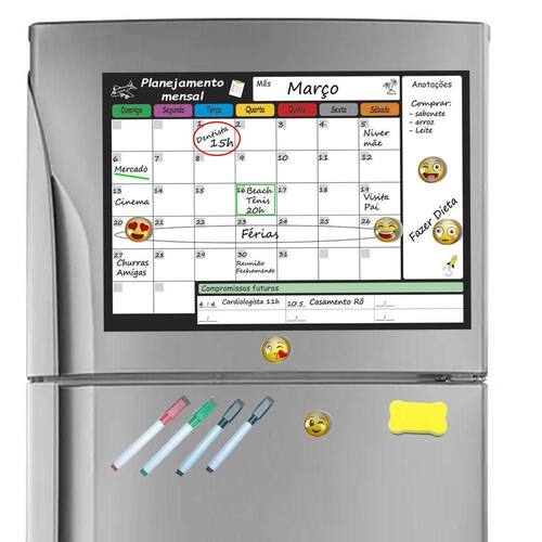 Planner mensal planejador magnético geladeira emoticons imã Esse kit parece perfeito para quem gosta de manter a rotina organizada de forma prática e divertida. Este planejador mensal magnético é ideal para anotar compromissos, tarefas e eventos diretamente na geladeira. Os emoticons ajudam a destacar eventos importantes ou simplesmente adicionar um toque de personalidade às anotações.