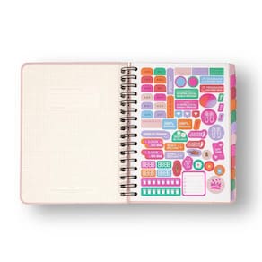 O Planner Permanente Wire-o Semanal Notas A5 é um produto atemporal e perfeito para quem quer começar o ano quando quiser.O planner possui: - divisórias em preto e branco com abas customizáveis. - 2 duplas anuais - 1 dupla planejamento financeiro - 1 página objetivos para este ano - 12 duplas mensais - 5 e 1/2 duplas semanais por mês, com listas de checagens e outros - cartela de adesivos funcionais e divertidos - bolsa pasta - folha calendário