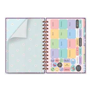 -105 Folhas de conteúdo, sendo: - dados pessoais, mais sobre mim, minhas metas, visão anual e muitos mais. -12 Divisórias coloridas -contém: envelope plástico resitente, marca página e cartela de adesivos -formato 134 x 205mm - Papel 90g