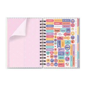 Capa dura, miolo com 210 páginas (105 folhas), formato: 13,4 cm x 20,5 cm, papel offset 90 g/m2 (a tinta das canetas não passa para o outro lado), encadernação em wire-o e elástico para fechamento. Acompanha envelope para documentos, marcador de páginas, capa plástica protetora, folhas de adesivos, 12 divisórias mensais. Conteúdo: calendário, dados pessoais, mais sobre mim, minhas metas, visão anual, ler/assistir/visitar, minhas viagens, cuide-se (bem-estar), visão mensal, inspirações para o mês, visão da semana, monitoramento de hábitos, minhas finanças e balanço do ano.