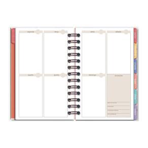 Lançamento Planner Argolado P! Charmosa capa plástica protetora com botão de fechamento metálico. Planeje seus objetivos e transforme-os em realidade! Use este planner como um guia rumo a um futuro feliz e com muitas conquistas. Você pode começar seus projetos quando quiser, miolo não datado. Capa dura, miolo com 210 páginas (105 folhas), formato 13,4 cm x 20,5 cm, papel offset 90 g/m2 (a tinta das canetas não passa para o outro lado), ferragem com duas argolas. Acompanham envelope para documen