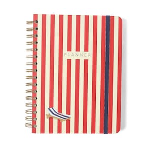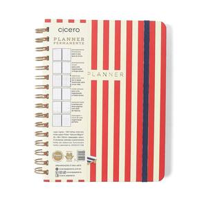 Este Planner tem capa dura, cantos arredondados, elástico para fechamento e encadernação em Wire-O (espiral duplo).