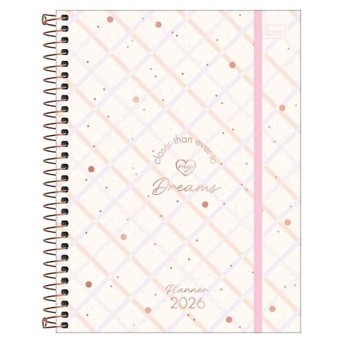 Se você busca um produto inspirado nas principais tendências de moda para se organizar, o planner espiralado soho da tilibra é a escolha perfeita. O produto tem tamanho 17,7 x 24 cm, capa dura com detalhes metalizados, fechamento com elástico e folhas com visões anual, mensal e semanal. Este planner 2026, que possui 80 folhas em papel creme, com gramatura de 90 g/m, é a escolha ideal para manter todas as tarefas e compromissos bem programados. Detalhes: bolsa de papel decorada capa: com detalhe metalizado capa acabamento: com detalhe metalizado e com relevo conteúdo: controle de hábitos, controle financeiro, listas, metas e objetivos e página para planejamento do futuro espiral colorido fechamento: com elástico folha de adesivos folhas: em papel creme e para anotações material: capa dura com acabamento metalizado parte interna da capa decorada produto certificado: fsc visão: anual, mensal e semanal formato: 177mm x 240mm gramatura: 90 g/m número de folhas: 80 folhas atenção: imagem meramente ilustrativa. Pode ocorrer mudanças no tom da cor da tela do celular/pc para o produto real ou mudanças na embalagem do produto sem aviso prévio por parte do fabricante. Marca: Não Informado