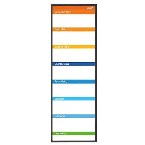 Planner semanal color mdf revestido preto fit é perfeito para auxiliar a semana, com mais praticidades facilitando o desenvolvimento do dia a dia. É feito em mdf material resistente e possui uma superfície envernizada que possibilita que você possa apagar e reescrever quantas vezes desejar. Acompanha porta caneta em polietileno. Tamanho: 20x 60cm atenção: imagem meramente ilustrativa. Pode ocorrer mudanças no tom da cor para o produto real ou mudanças na embalagem sem aviso prévio por parte do fornecedor/fabricante. Marca: Não Informado