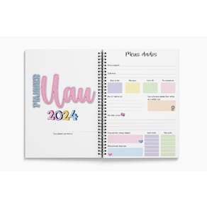 Planner Uau 2024 Cores Rosa Frase , Para palnejamento Anual, Organização Diaria.