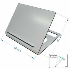 Mesa suporte inclinavel em mdf 6mm para estudos ou leitura. Fabricado atravéz de tecnologia digital de corte a laser, tem o tmanho ideal para diversas aplicações. Pratico e fácil, pode ser guardado em qualquer local tanto na horizontal como na vertical. Possui 5 níveis de regulagem de altura, se adequando a sua necessidade. Tamanho da área do suporte aproximado: 40x30x5cm Marca: Não Informado