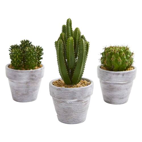Cactus Artificial de 20 cm Casi Natural (Juego de 3) - Añade un toque del suroeste a tu oficina - Tallos verdes y gruesos con formas variadas para un aspecto único - Fabricado con gran atención al detalle - Espinas realistas - Recomendado para uso interior o en un espacio exterior cubierto y protegido