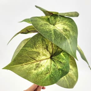 A Planta Artificial Caladium Verde é o toque de charme e frescor que faltava na sua decoração. Com 26 cm de altura, folhas exuberantes e acabamento realista, essa folhagem é perfeita para composições delicadas, vasos decorativos, estantes ou como complemento em arranjos naturais e sofisticados. Seu visual tropical e vibrante traz vida aos ambientes, enquanto sua estrutura leve e flexível permite uma infinidade de usos decorativos - tudo isso sem precisar de cuidados ou manutenção.