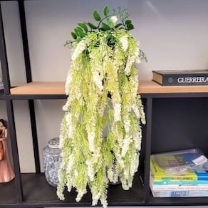 Adquira sua o Pendente de Glicínia Branca Artificial agora e transforme seus espaços com o charme eterno da natureza.