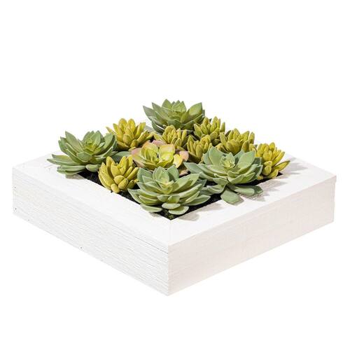 Vickerman Arranjo de suculenta verde artificial interno 30,48 cm x 30,48 cm - suculentas em recipiente quadrado - vegetação para casa ou escritório - livre de manutenção
