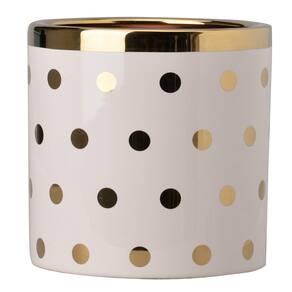 Plantador cilíndrico de cerâmica Benjara com padrão de bolinhas, branco e dourado