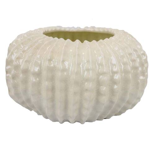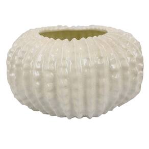 Plantador redondo Benjara Harry com design texturizado, cerâmica branca brilhante de 13 polegadas