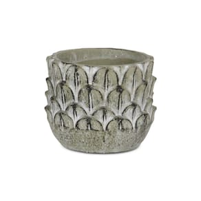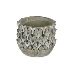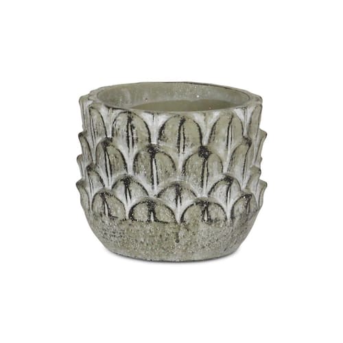 Plantador de cerâmica redondo de cimento Cheung's com padrão de penas sobrepostas, cinza