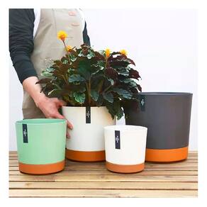 Maçadeira inteligente: Design com drenagem reflexiva permite que sua planta receba ar e distribua a água para que as raízes não sejam purificadas. Estilo simples. Estas canetas são projetadas para sustentar suas encantadoras plantas, suculentas, flores e outras plantas com seu design moderno e minimalista. Bandeja extraíble: la bandeja y la maceta se pueden separar facilmente, y la parte inferior de la maceta es de diseño poroso, lo que es conveniente para la ventilación y el drenaje Tamaño y material: Las macetas están hechas de plástico reciclable durero y fibras de madera.