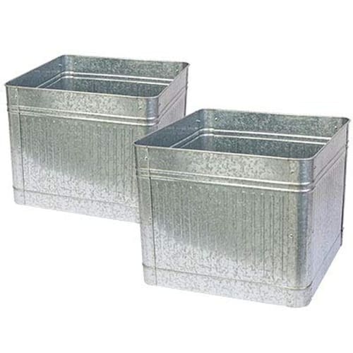 Este pacote contém 2 vasos quadrados Panacea Vintage Raised, galvanizados envelhecidos, 21" L cada.