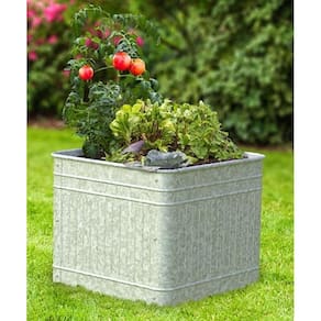 Designe duas seções do seu quintal para o cultivo de safras específicas nestes plantadores quadrados elevados vintage galvanizados e envelhecidos da Panacea. Painéis de aço levemente corrugados formam as laterais dessas 2 floreiras sem fundo, unidas por peças de canto curvas. Linhas horizontais e verticais em relevo em cada painel evocam maravilhosamente um cocho de gado como um elemento rústico, complementado pelos tons de cinza manchado. As molduras quadradas de 21" são uma ótima opção para gramados menores e são simples de forrar com fibras de plástico ou coco (não incluídas) para criar uma barreira entre as paredes e a grama. Cada um deles também pode conter um pote de 20" de diâmetro ou menor, e a borda superior enrolada oferece uma aparência finalizada. Use o hardware e a chave incluídos para montar facilmente as unidades e coloque suas bases abertas no gramado para obter um motivo impressionante. Feitas de aço, essas peças sem fundo duram muitas temporadas e seus tons de cinza contrastam maravilhosamente com suas plantas. Crie o ambiente de cultivo perfeito para duas de suas safras favoritas nestes plantadores quadrados elevados vintage galvanizados envelhecidos. Montagem necessária.