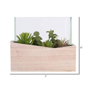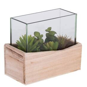 - RECIPIENTE DECORATIVO DE MADEIRA - Este arranjo vem em um recipiente de madeira moderno com tampo de vidro medindo 7" Lx3,5" Wx6" H.