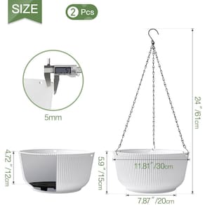 T4U Plantadores pendurados brancos auto-irrigáveis de 30,5 cm para plantas internas e externas, conjunto de 2 com orifício de drenagem e plugue Especificações do produto: - Material: corrente de plástico e ferro - Cor: vaso de flores branco e corrente preta - O pacote inclui: 2 cestos suspensos de plástico com orifício de drenagem, plugue e chassi de plástico. Características do produto: [Correntes fortes, fácil de usar] - O vaso suspenso ao ar livre é fácil de usar e pode ser pendurado ou colocado. A corrente triangular resistente à ferrugem com ganchos é forte o suficiente para manter o equilíbrio melhor do que a corda e não vai quebrar ou ficar mofada. Basta prender os 3 furos do vaso de plantas pendurado com ganchos para pendurá-lo. Pode ser pendurado em qualquer lugar em ambientes internos ou externos. Se você estiver procurando por um vaso de bancada, basta remover a corrente e o design de fundo plano garante que não tombe. Sistema de drenagem conveniente: este vaso de plantas suspenso vem com 1 orifício de drenagem para criar um ambiente de vida saudável para suas plantas internas e externas. O reservatório de água na base garante que suas plantas e flores sempre recebam a quantidade correta de água sem a preocupação de regar demais. Você pode usar plugues para plantas de interior. [Design minimalista] - O vaso suspenso é projetado para manter sua linda planta, como hera, ervas, samambaias, filodendros, suculentas, flores ou outras plantas com seu design minimalista moderno. Listras verticais brancas em qualquer estilo de decoração de casa. Pendurar na vertical como uma economia de espaço conveniente. [Vasos 2 em 1 para plantas de interior] - Nossos vasos de flores brancas de 30,5 cm podem ser pendurados ou colocados. Você pode pendurá-las perto da janela ou remover as correntes e colocá-las no seu quarto ou sala de estar, o que dará uma bela vista à sua casa. Há orifícios de drenagem e plugues na parte inferior para que você nunca se preocupe em molhar a mesa ou o chão. Garantia: - Plantas não inclusas! - Devolução e troca gratuitas dentro de 120 dias. - Qualquer dúvida, sinta-se à vontade para entrar em contato conosco agora. - Design minimalista: o vaso suspenso T4U é bem feito com aparência moderna e resistente. Os vasos pendurados em branco são simples e elegantes e combinam com qualquer planta, como sua planta aranha, plantas de videira, hera, samambaias, suculentas, flores ou outras plantas - Design autoirrigável: há um prato dentro do vaso de flores suspenso para reciclar água enquanto o solo está separado acima. Não se preocupe em molhar a mesa ou o chão devido ao plugue do orifício de drenagem incluído, você também pode removê-lo para evitar excesso de água - Qualidade durável: a corrente resistente de suporte de plantas pode pesar até 6 kg e manter suas plantas longe do vento e da chuva. Eles são os vasos suspensos ideais para plantas internas e externas para decorar jardins, varanda, salas de estar, escritórios, janelas, gramado - Vaso de vaso 2 em 1: nossos vasos brancos podem ser pendurados ou colocados. Instalar o cabide de corrente para plantas internas nos cestos suspensos é muito simples. Eles também podem ser facilmente removidos se você quiser puxar a planta para baixo para podar ou decorar mesas - Presentes para amantes de jardim: o conjunto de vasos pendurados com irrigação automática vem com 2 peças de vasos suspensos de 30,5 cm. O estilo moderno, elegante e único de vaso de plantas suspenso é um presente ideal para os amantes de plantas. Pode cultivar bem as plantas e adicionar beleza natural à sua casa