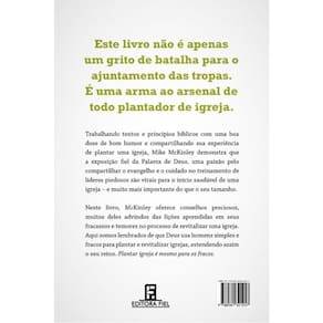 Como Deus usa pessoas confusas para plantar igrejas comuns que fazem coisas extraordináriasTrabalhando textos e princípios bíblicos com uma boa dose de bom humor e compartilhando sua experiência de plantar uma igreja, Mike McKinley demonstra que a exposição fiel da Palavra de Deus, uma paixão pelo compartilhar o evangelho e o cuidado no treinamento de líderes piedosos são vitais para o início saudável de uma igreja - e muito mais importante do que o seu tamanho.Neste livro, Mike McKinley oferece conselhos preciosos, muitos deles advindos das lições aprendidas em seus fracassos e temores no processo de revitalizar uma igreja. Aqui somos lembrados de que Deus usa homens simples e fracos para plantar igrejas, estendendo assim o seu reino, Plantar igreja é mesmo para os fracos.