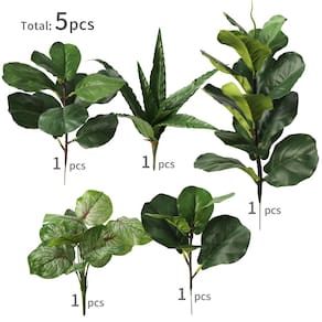 Plantas artificiais - ?Decoração rica em acessórios?: Nosso ficus Pandurata artificial para uso externo é um ótimo valor, montado a partir de uma variedade de acessórios de alta qualidade: uma planta Fiddle Leaf Fig inclui um único caule com 6 folhas, um único caule com 10 folhas, um único caule com 15 folhas de figo denso Fiddle Leaf e duas grandes folhas de magnólia. Uma vez montada, a Fiddle Leaf Fig é exuberante e vibrante com vida. - ?Design de tamanho cuidadoso?: esta planta artificial Fiddle Leaf Fig tem aproximadamente 48 a 50 cm de altura. Com base no número de folhas, cada haste de Ficus Pandurata tem cerca de 13,7 cm, 43 cm e 49,8 cm, respectivamente. Existem três hastes de figo Fiddle Leaf e duas grandes folhas de magnólia no total. Cada planta tem várias folhas verdes, tornando esses ramos verdes perfeitos para adicionar um toque natural a qualquer arranjo. - ?Material resistente a UV de alta qualidade e durável?: A figueira artificial Fiddle Leaf é feita de material PE de alta qualidade, com fio interno nas hastes. Nosso material é certificado como não tóxico e inodoro. A planta tem uma aparência bonita e fresca, é resistente aos raios UV e não desbota. O fio é flexível, permitindo que você dobre as hastes de acordo com suas ideias decorativas e requisitos de forma, criando uma atmosfera elegante e tranquila em diferentes ambientes. - ?A escolha perfeita para decoração em várias cenas?: Nosso Ficus Pandurata artificial é uma excelente escolha para sua decoração de vegetação ao ar livre. Pode ser utilizado não apenas para decoração ao ar livre e pátio, mas também colocado em varandas, jardins, varandas e salas de estar, mantendo seu ambiente sempre cheio de vitalidade da primavera. - ?Manutenção e cuidados?: A figueira artificial de folha de violino não requer irrigação ou corte como vasos de plantas no solo. Você não precisa ter habilidades de jardinagem. Devido ao seu material especial e alta qualidade, você só precisa montá-lo de acordo com sua visão. Se as folhas e galhos ficarem empoeirados, basta limpá-los com um pano ou pano úmido. Nossas plantas verdes artificiais de alta qualidade são adequadas para aqueles que estão interessados em decoração de ambientes externos e têm um rico senso de estilo de vida.