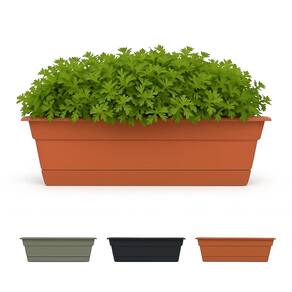 Bloem Dura Cotta Vaso de caixa de janela: 45,72 cm - Terra Cotta - com bandeja, caixa de resina à prova de intempéries, bandeja removível para uso interno e externo, jardinagem, capacidade de 2 galões