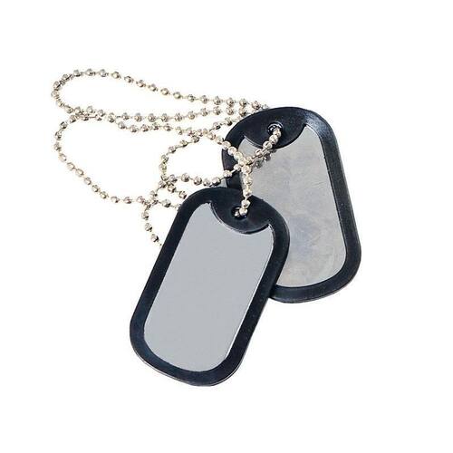 As plaquetas de identificação também são conhecidas como Dog Tags. Elas possuem o nome e dados básicos do soldado em duas chapinhas que são penduradas no pescoço através de um cordão. No caso de falecimento durante uma batalha, uma chapinha é recolhida e a outra fica com o corpo.