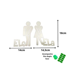 Palaca sinalização para banheiro, masculino e feminino, mdf 3mm cortado a laser, medindo 18 centimentros de altura por 14 centimetros de largura, acompanha fita dupla face, este anuncio em especifico é referente ao par com a cor branco, temos individuais e na cor cru natural que pode ser pintado.