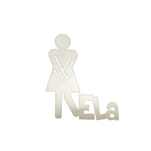 Palaca sinalização para banheiro, masculino ELA, mdf 3mm cortado a laser, medindo 18 centimentros de altura por 14 centimetros de largura, acompanha fita dupla face, este anuncio em especifico é referente a unidade feminina ELA com a cor branco, temos individuais e na cor cru natural que pode ser pintado.