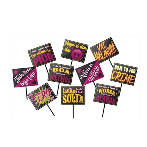 As Plaquinhas Divertidas tem se tornado cada vez mais comuns em todos os tipos de festas pois ficam ótimas no momento de tirar as fotografias da festa utilizando frases super divertidas e entrando no clima da festa para depois arrasar postando elas. As Plaquinhas Divertidas Baladeiros em especial combina com a Decoração de Festa Neon!