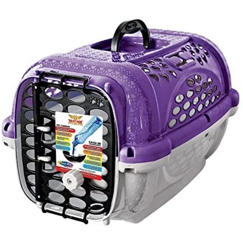 Plast Pet Caixa Transporte Panther Nº3 Lilás - Indicada para cães e gatos; - Indicado para pets até 15 kg; - Segurança, qualidade, design e tecnologia; - Nível de resistência altíssimo que pode ser utilizada no carros, voos e onde mais desejar; - Garante a segurança e o conforto do seu pet; - Confortável e segura; - Alça com desenho ergonômico, suporte duplo para passagem de cinto de segurança; - Fácil montagem e a parte inferior não é vazada para melhor retenção do xixi; - A porta possui trava de segurança; - Área aberta do teto proporciona mais ventilação; - Modelos 3 e 4 contém POM na alça, garantindo o transporte de cães mais pesados; - Acompanha bebedouro; - Disponível nos tamanhos 1, 2, 3. Tamanho N3 - Profundidade: 53cm /Largura: 43cm / Altura: 34cm