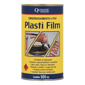 O Plasti Film Emborrachamento a Frio Preto 500ml da Quimatic é um revestimento flexível e resistente, desenvolvido para proteger superfícies metálicas e plásticas contra ferrugem, corrosão, impactos, umidade e produtos químicos. Sua fórmula de alta aderência permite uma aplicação prática, sem a necessidade de aquecimento ou ferramentas especiais. A aplicação pode ser feita com pincel, imersão ou spray, formando uma camada emborrachada de secagem rápida. Após curado, o filme pode ser removido manualmente, como uma película, sem danificar a superfície autêntico — ideal para revestimentos temporários ou definitivos.