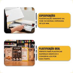 Dê vida nova aos seus documentos e garanta proteção duradoura contra o tempo e acidentes. Transforme seus papéis em um investimento de longo prazo com acabamento . Proteção Total e Acabamento Impecável: Conserva documentos por anos, evitando amarelamento e desgaste. Proteção à prova d'água, poeira e amassados. Acabamento brilhante Glossy que realça cores e clareza. Cantos arredondados para segurança e visual elegante. Solda resistente para plastificações perfeitas e sem bolhas. Alta transparência para leitura nítida e . Especificações Técnicas: Tamanho: A4 220 mm x 307 mm - Ideal para documentos diversos. Espessura: 0,05mm 125 micras - Camada protetora robusta. Quantidade: 100 folhas por pacote. Cor: Transparente. Tipo: Glossy Brilhante. Material: Plástico de alta qualidade com chips de EVA coreano para aderência superior. Compatibilidade: Plastificadoras a quente. Invista na preservação dos seus papéis mais importantes Adquira agora seu pacote de Plástico para Plastificação Masterprint A4 e garanta um acabamento e duradouro para seus documentos, certificados, fotos e muito mais. Clique em comprar e proteja seu conteúdo Marca: Não Informado