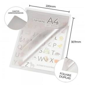 Quantidade de folhas: 20; Espessura: 125 micras / 0,05mm; Acabamento: Brilhante; Medidas: 307mm x 220mm.