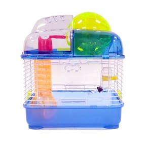 YML Gaiola de rato de hamster anão de plástico transparente com bola na parte superior, azul